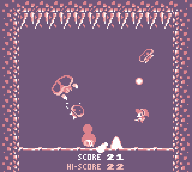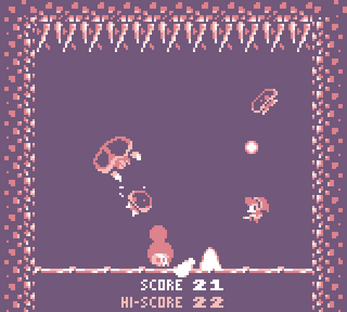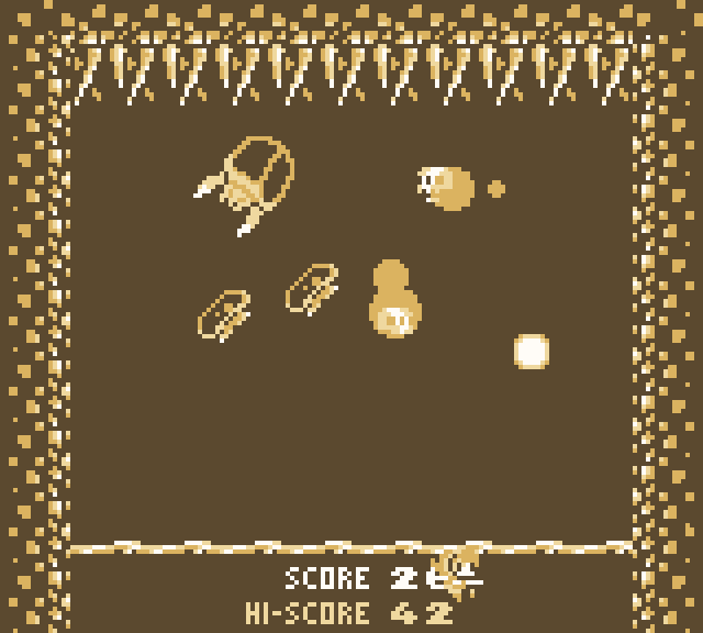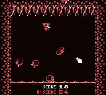 I discovered this small game couple years ago and always wished to play it on the original Gameboy. Obviously, due to technical limitations, I had to scale some things back, but aside from the flickering, I think the result is acceptable. I would have loved to use the original music, but my skills with trackers are very limited, so I used a song from Beatscribe instead. If someone is able to recreate the song in the .uge format, I would be happy to implement it.